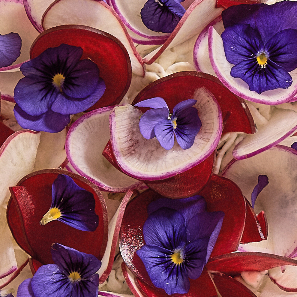 كريمة البارميزان، بواريس كونفيتس، أماندي، فلور دي سيل، بارميزان 24 شهر، فيلادلفيا، زهور صالحة للأكل.