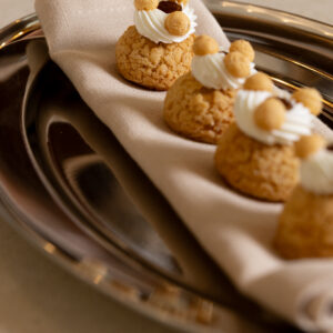 Golden choux filled with hazelnut praline cream — a nutty delight with a soft heart.