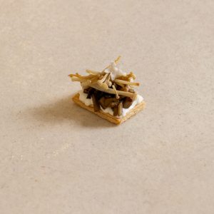 Enoki & black garlic tartlet
