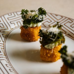 Crispy Polenta with Herb Cream & Kale Parmesan