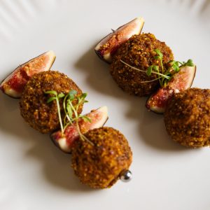Goat Cheese ball, Fig & Hazelnut Bite