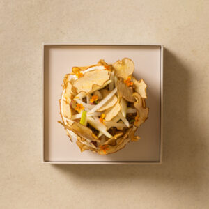 Parmesan cream with truffle, fleur de sel, 30 month parmesan, Philadelphia, edible flowers, radish, fresh truffle shaving.