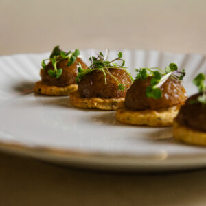 Creamy ricotta, taggiasche olive bread, confit tomatoes, fresh basil and pearls of aged balsamic — the essence of Italy in one bite.