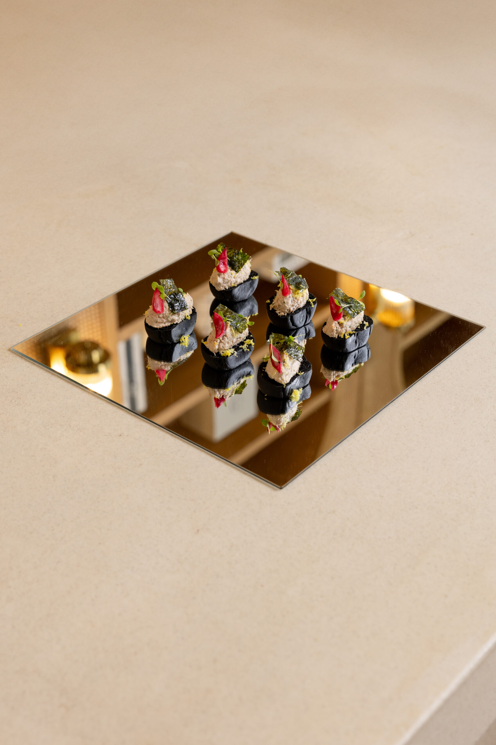 Japanese-inspired Beef Tenderloin tartare with truffle essence, served with crispy nori chips