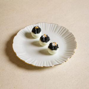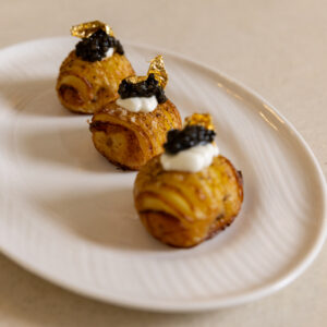 Warm fan-cut baby potato, light cream, caviar and gold leaf — indulgence in its purest, most elegant form.
