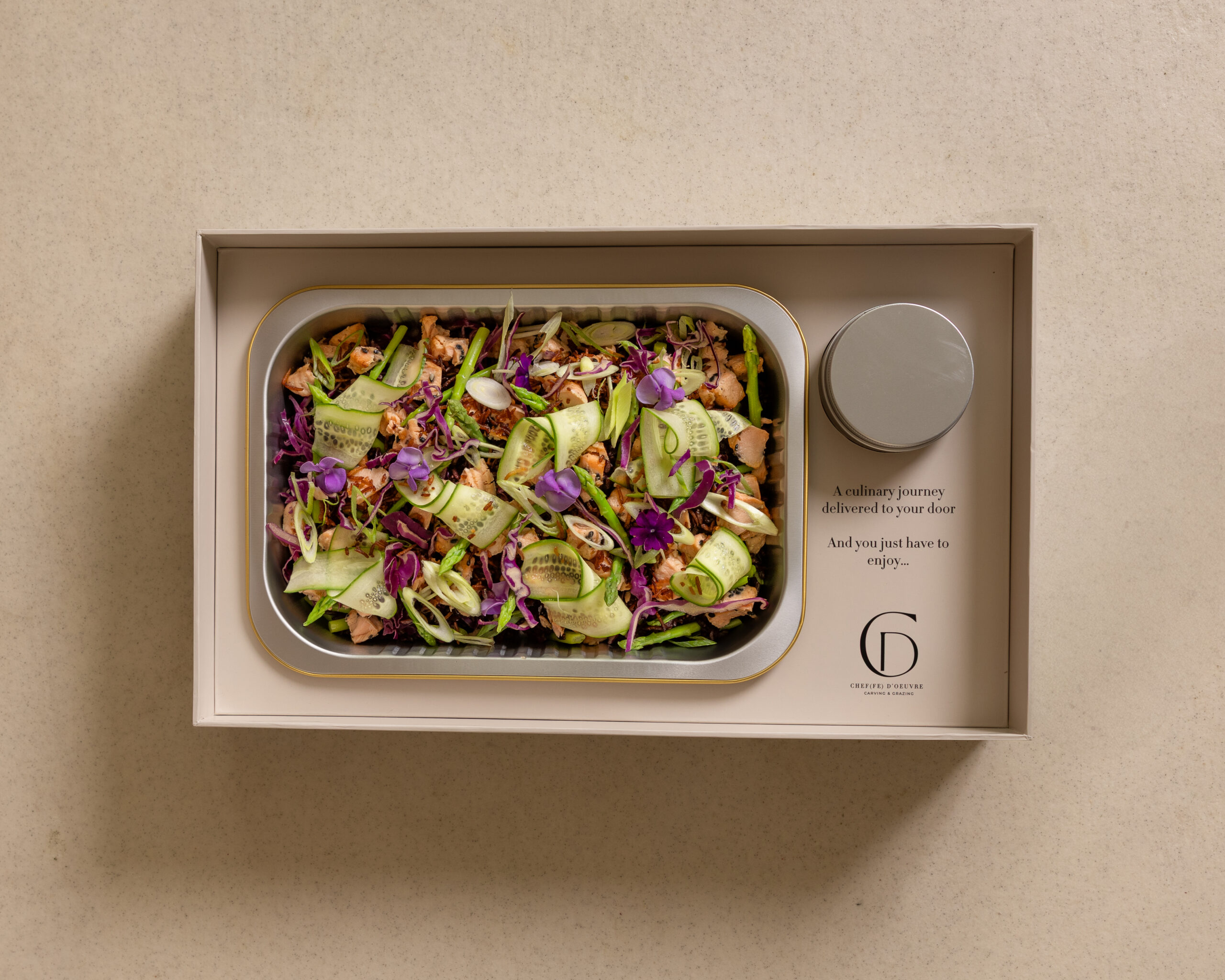 For optimal freshness, we recommend keeping the salad sealed with the lid for up to two days. The dressing is provided separately to maintain the quality and texture of the ingredients, ensuring a better tasting experience.