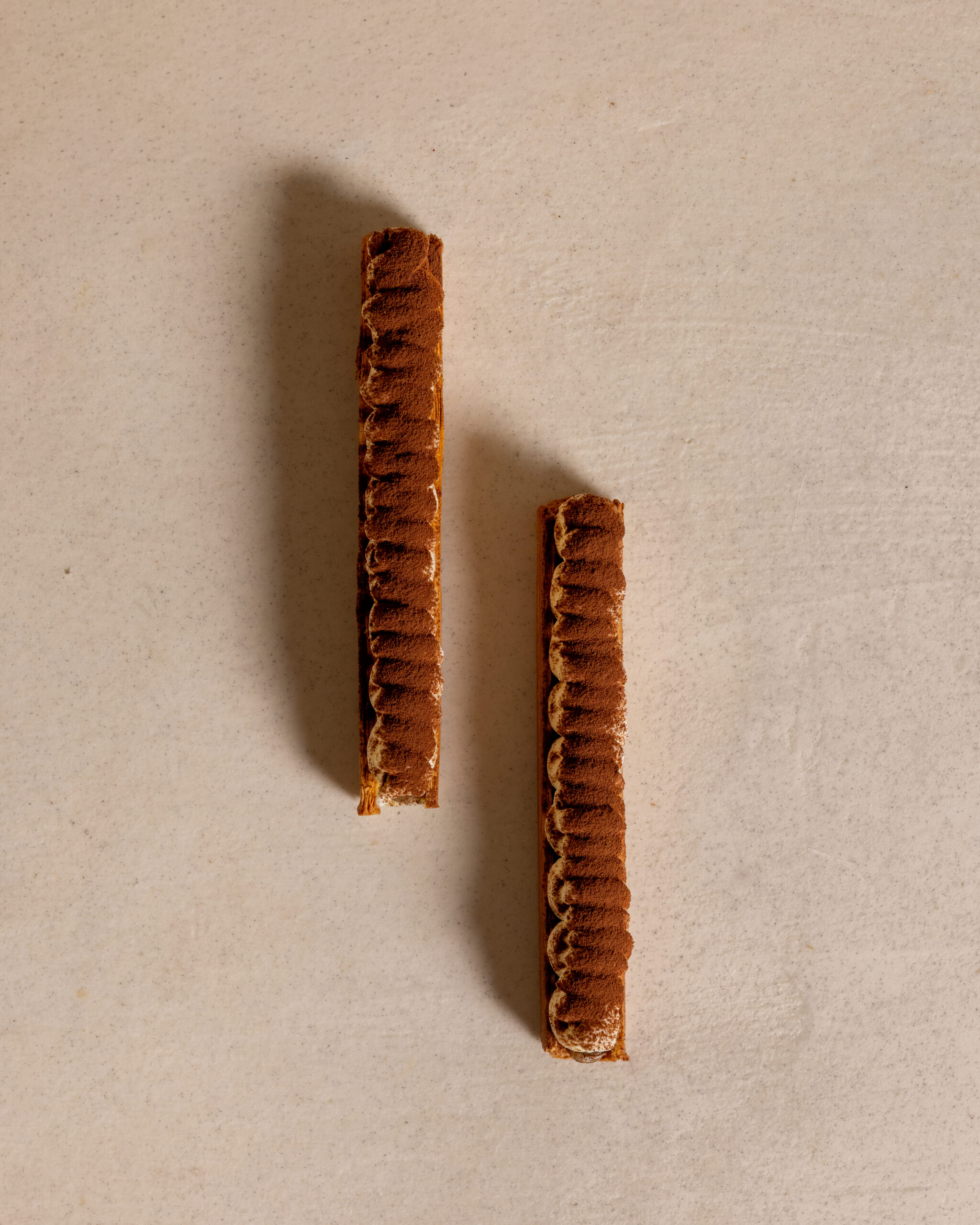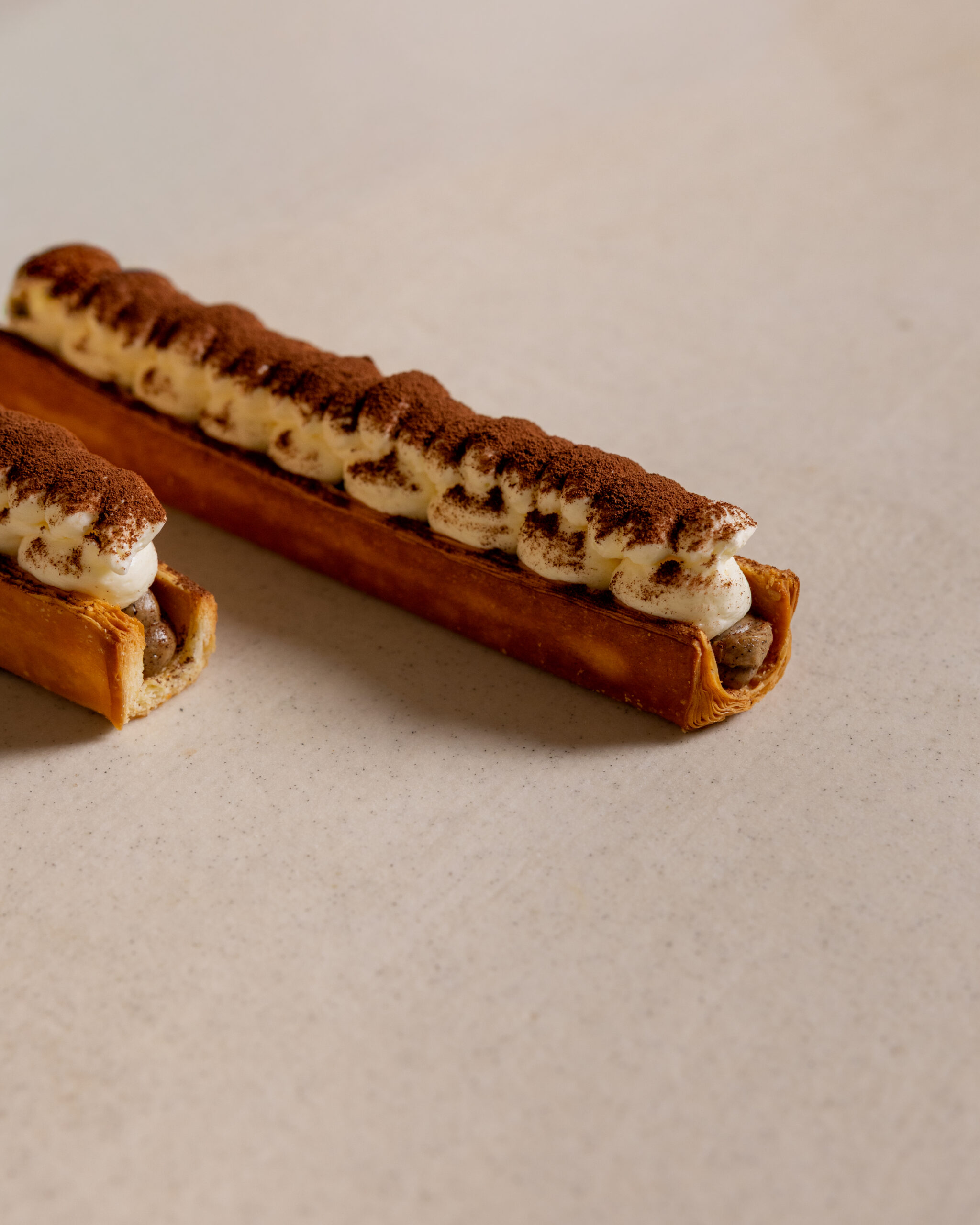 An elegant twist on a classic tiramisu, reimagined as a crisp, golden puff pastry. Layers of delicate cream and coffee-infused notes create a sophisticated, indulgent dessert . All the charm of tiramisu, with a refined, crunchy finish.