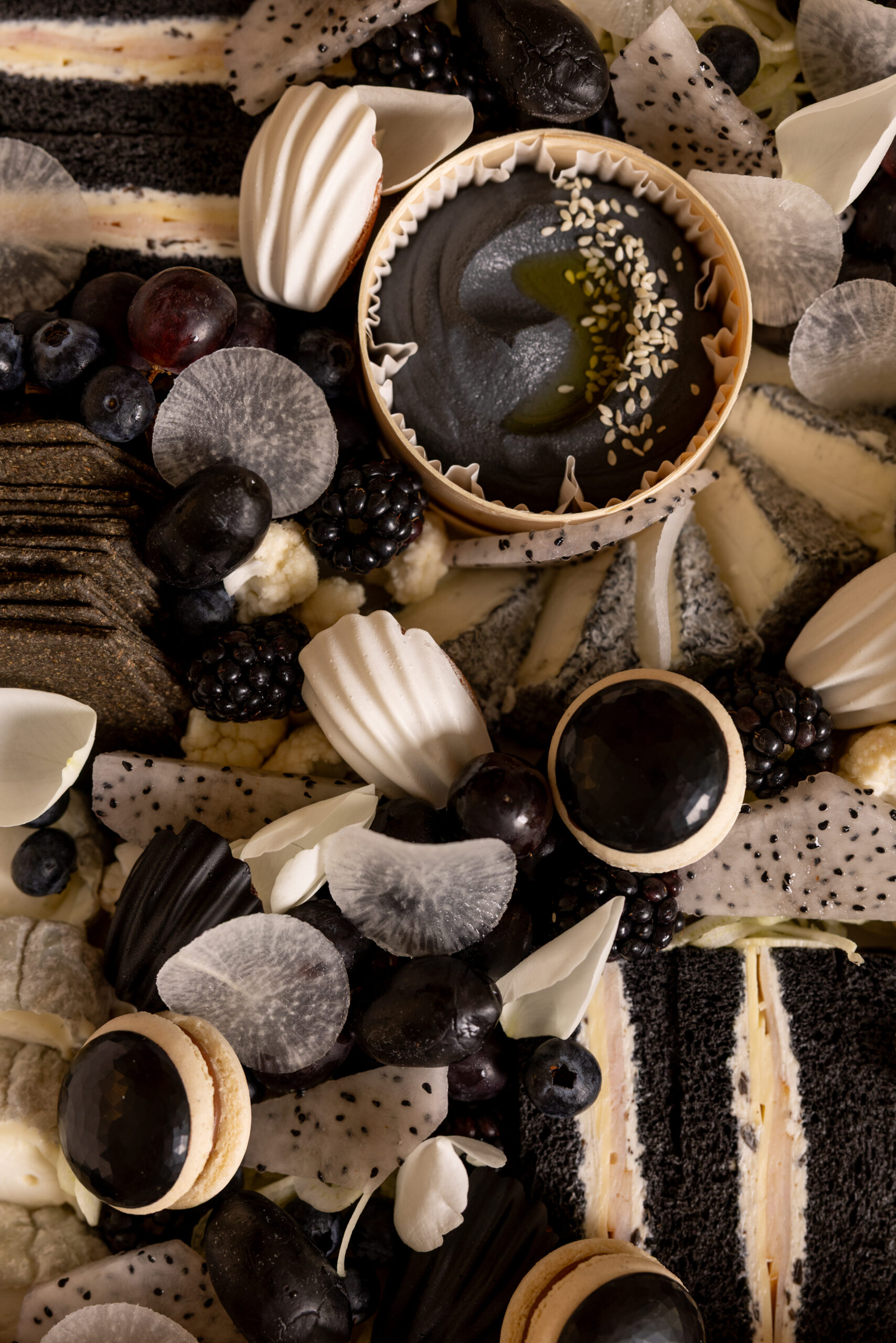 A black and white creation where contrasts meet in perfect harmony. Textures intertwine, flavors whisper, and every detail catches the eye. Here, simplicity becomes a form of luxury, and purity an art. A culinary piece crafted with the precision and grace of haute couture. Signed Cheffe d’œuvre.