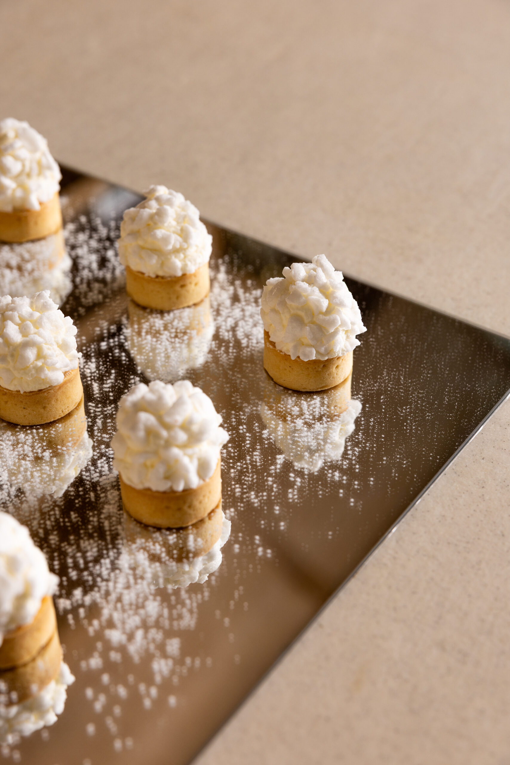 Each creation captures the essence of the colder months: comforting textures, delicate warmth, and the poetry of winter ingredients elevated to haute-cuisine artistry. From golden truffle canapés and chestnut tartlets bites to candied madeleines and shimmering praline petits fours , every bite is a story of craft, seasonality, and elegance.